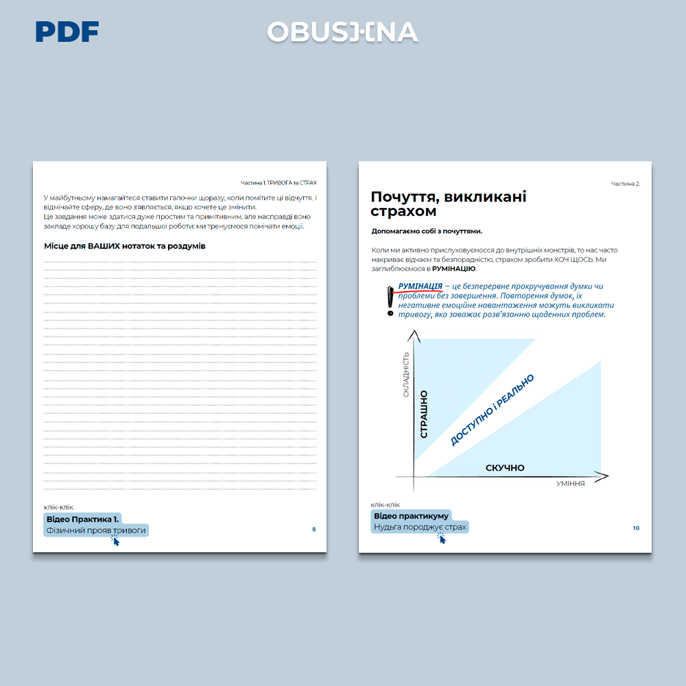 Коли емоція страху починає заважати діям, ми маємо кілька варіантів реагування. Перший — продовжувати ігнорувати тривожність, що лише посилює проблему. Другий — навчитись «читати» власні відчуття та впроваджувати інструменти, які дають цьому страху здоровий вихід. У практикумі “Страхи або як боятися і робити” зібрано низку технік для роботи з тілом і свідомістю.