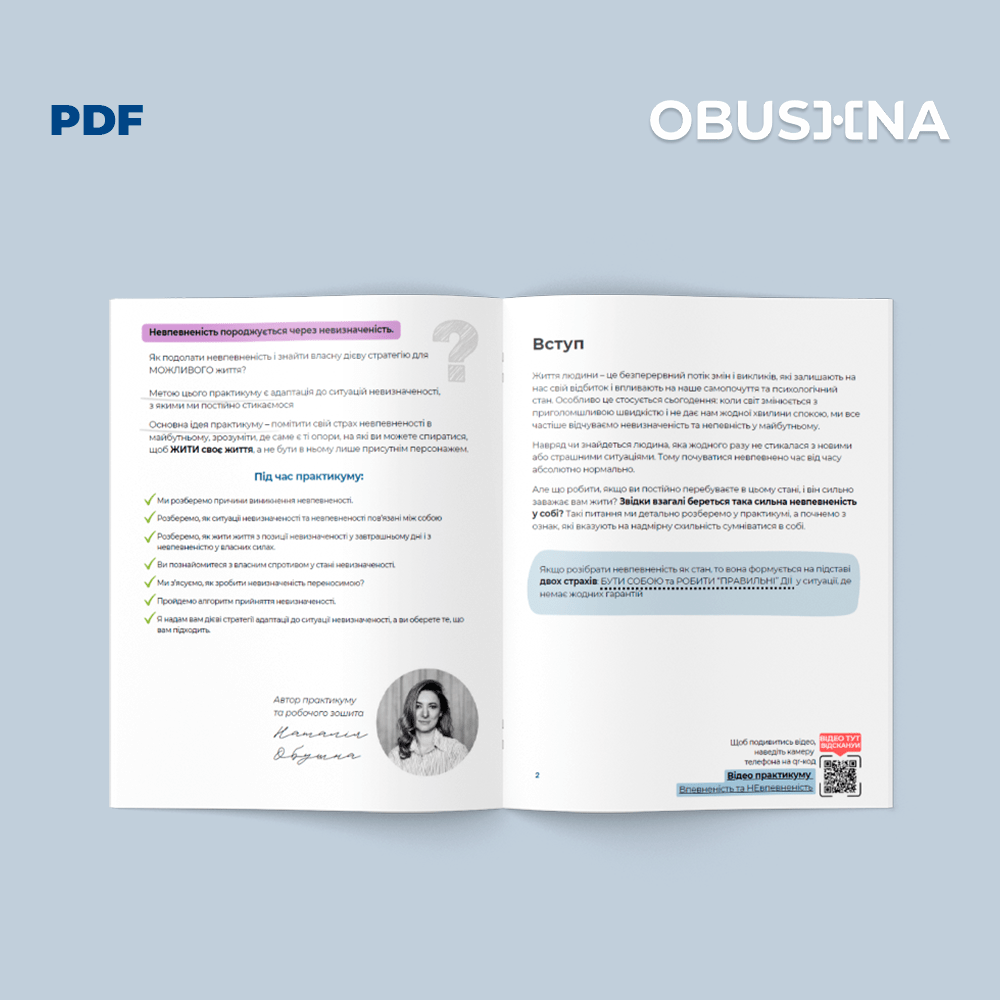 Відчуття сумніву у власних силах знайоме багатьом. Невпевненість у собі може перешкоджати реалізації потенціалу, заважати приймати важливі рішення та впливати на якість життя. Ми пропонуємо електронний посібник, який допоможе розібратися з причинами сумнівів і навчить їх долати.