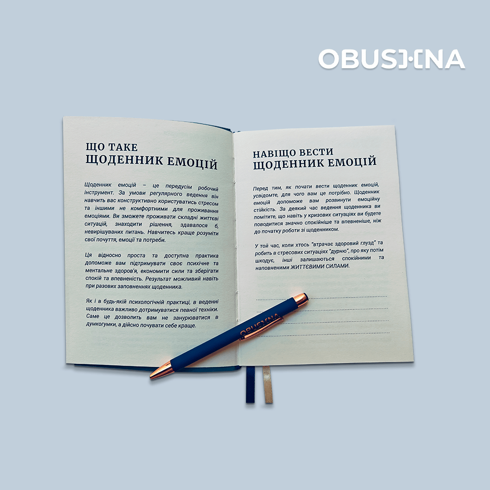 Замовляйте “Особистий щоденник OBUSHNA PRO” вже сьогодні, щоб розпочати свою подорож до емоційної свободи. Кожен запис у цьому щоденнику стане кроком до глибшого розуміння себе, відкриваючи шлях до внутрішньої гармонії та емоційного благополуччя.