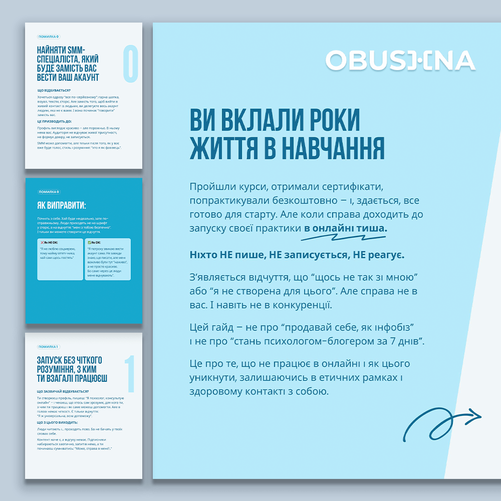 Проблема не в тому, що психологи “не вміють в маркетинг”. Проблема в тому, що більшість помилок — це неусвідомлені патерни, які легко виправити при правильному підході.